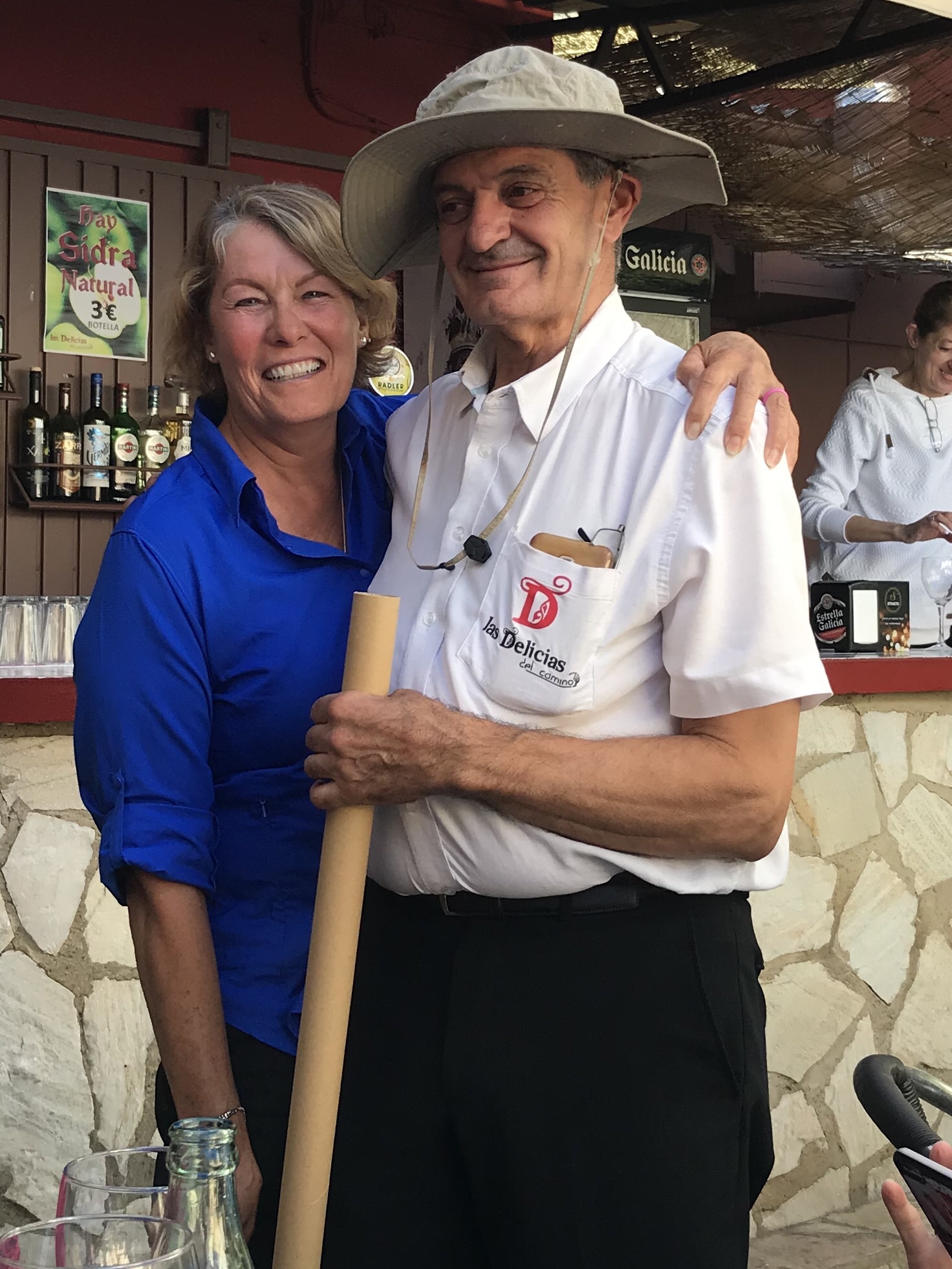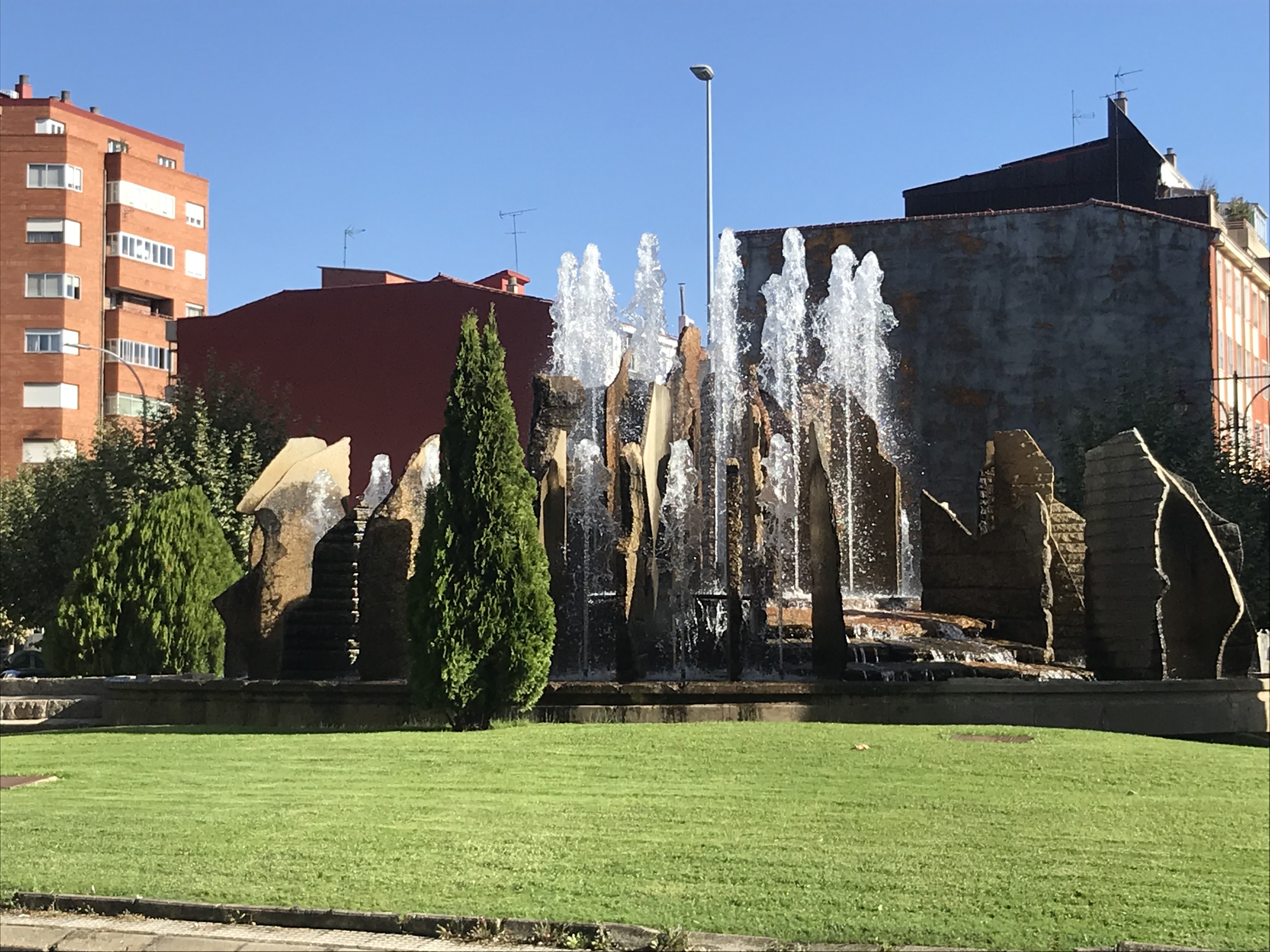We started off in the damp mist in the dark so we could hopefully reach Cruz de Ferro at sunrise or daybreak…did well until Debbie’s headlamp failed and we slowed down a bit…even so, we witnessed our best sunrise yet and a lightly expressed rainbow at the Cross! First 2 blogs will show a series of the sunrise…next Cruz de Ferro…